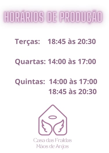 Nossa instituição utiliza mão de obra voluntária nos processos de fabricação das fraldas. A produção é feita manualmente, portanto, necessitamos de voluntários que queiram doar seu tempo, conhecer novas pessoas e se tornar parte dessa grande família "Mãos de Anjos".